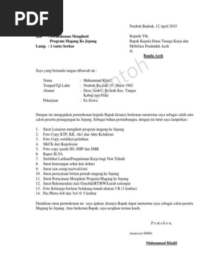 Contoh Surat Lamaran Magang Ke Jepang Dari Disnakertrans