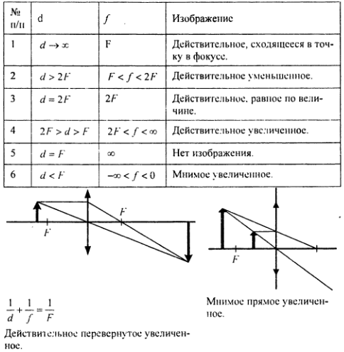 Пользуясь формулой собирающей линзы: 1/d+1/f=1/F, рассчитайте положение и определите характер изображения предметов, различно - Универ soloBY